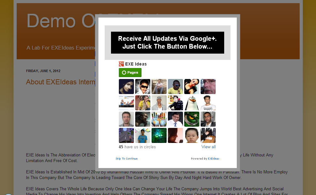 After my previous CSS-Facebook POP-UP And CSS-Twitter POP-UP widget, I am here with CSS-Google Plus POP-UP widget that is also same as previous one. In this article i will share the expirence that How To Add Simple, Stylish, Awesome And Beautiful CSS-LightBox Un-Blockable POP-UP Google Plus Circle With No J-Query Widget For Blog & Website To Get More Real Fan From Your Site Visitor And To Spice Up Your Blog. As you know that many of the blogger has also have this but here the golden thing is that this is made up of World First Unblockable CSS Lightbox POPUP Works With IE+7 And Other Browsers Too. This is that main thing that make it different from others.
