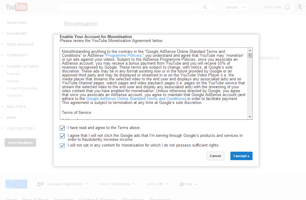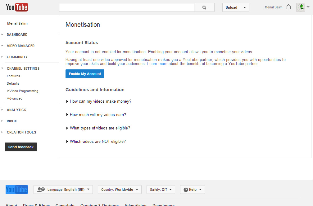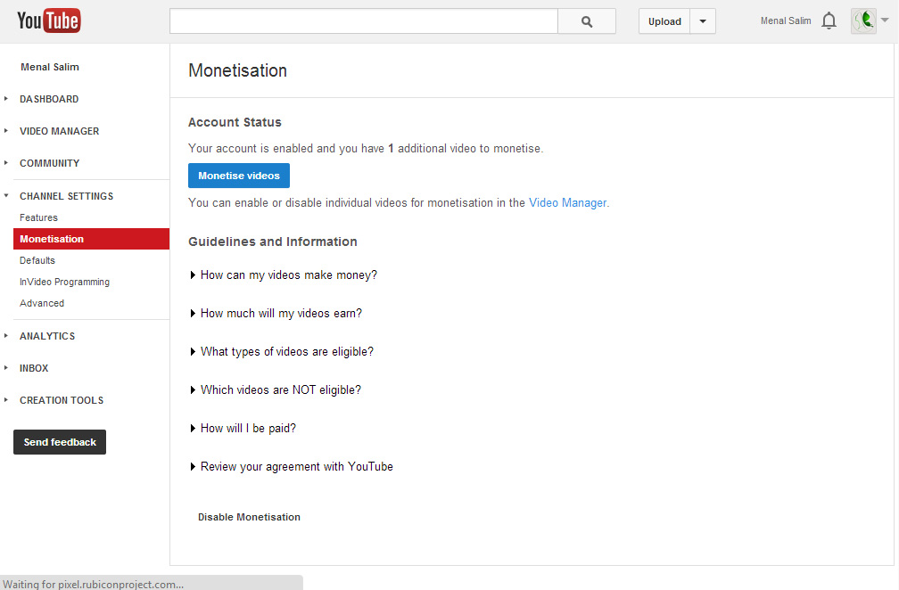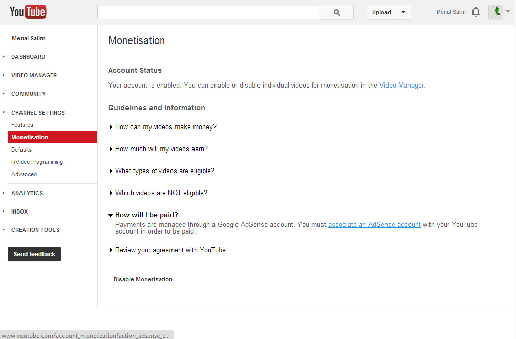 Step 1:) Now go back on “Monetization” page again via www.youtube.com/account_monetization