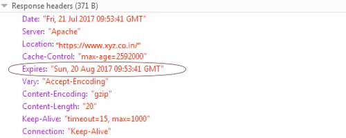 Check out the below screenshot. You can see that the Expiry header set in response header of your file.
